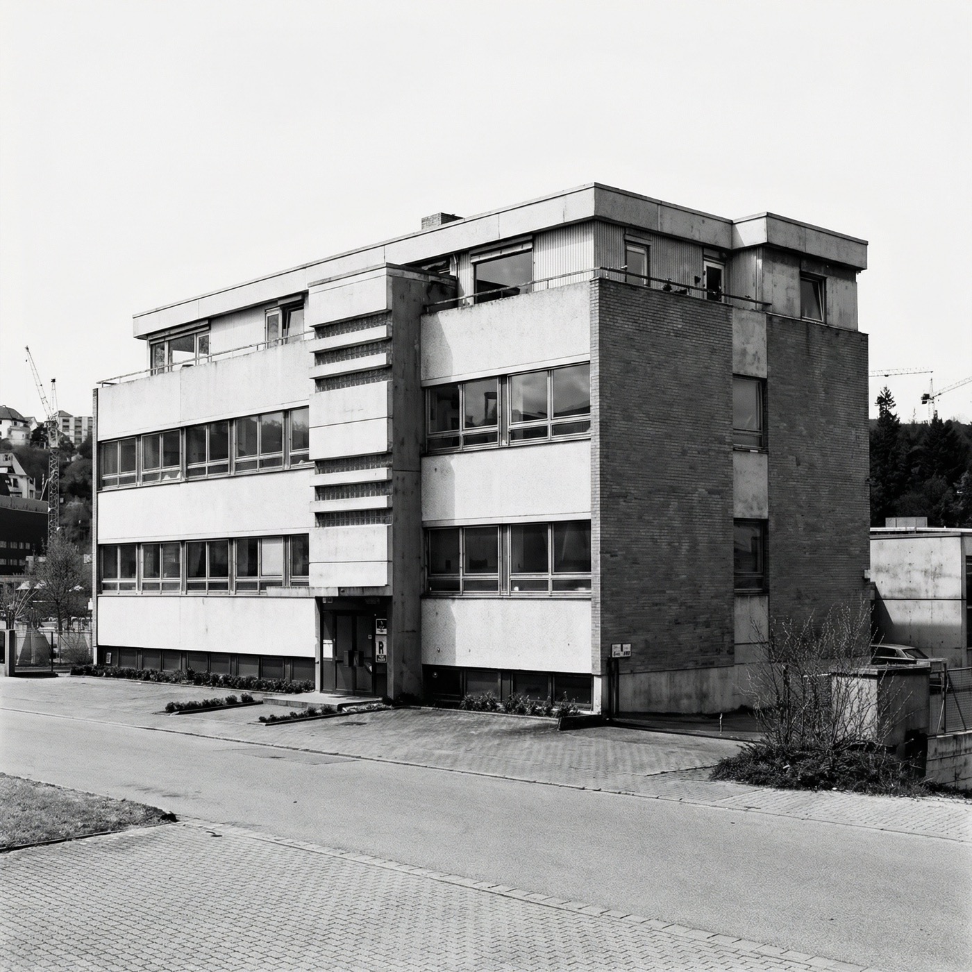 Moderner Bau mit Werkstatt, Lager und Büro unter einem Dach.