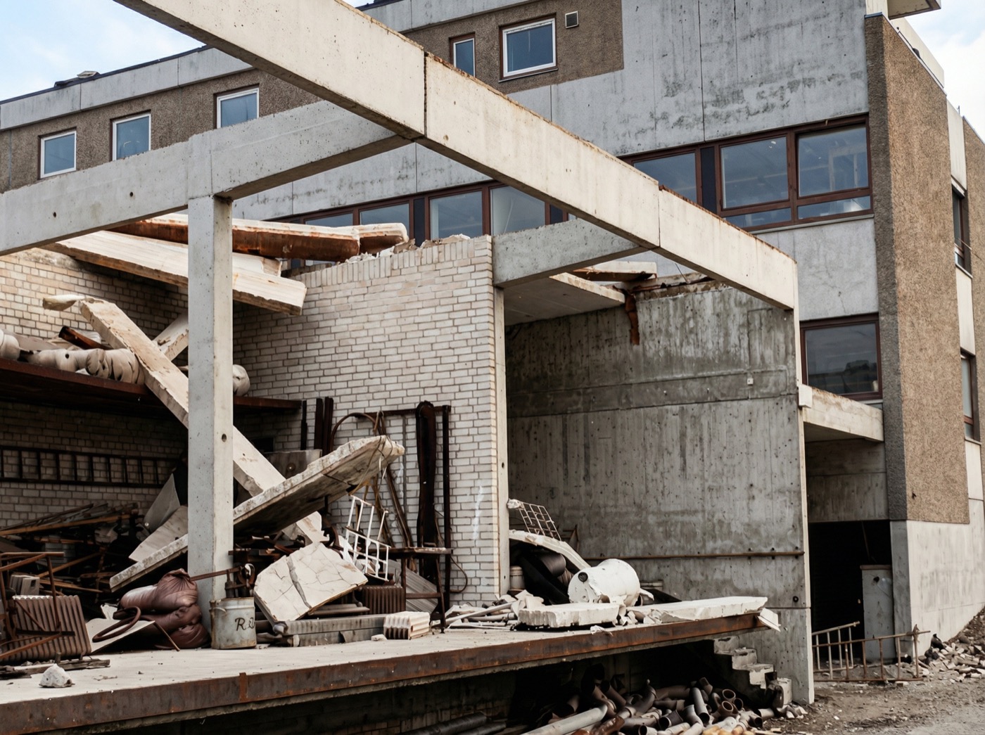 Nur eineinhalb Jahre nach dem Einzug – Dach und Halle stark beschädigt.